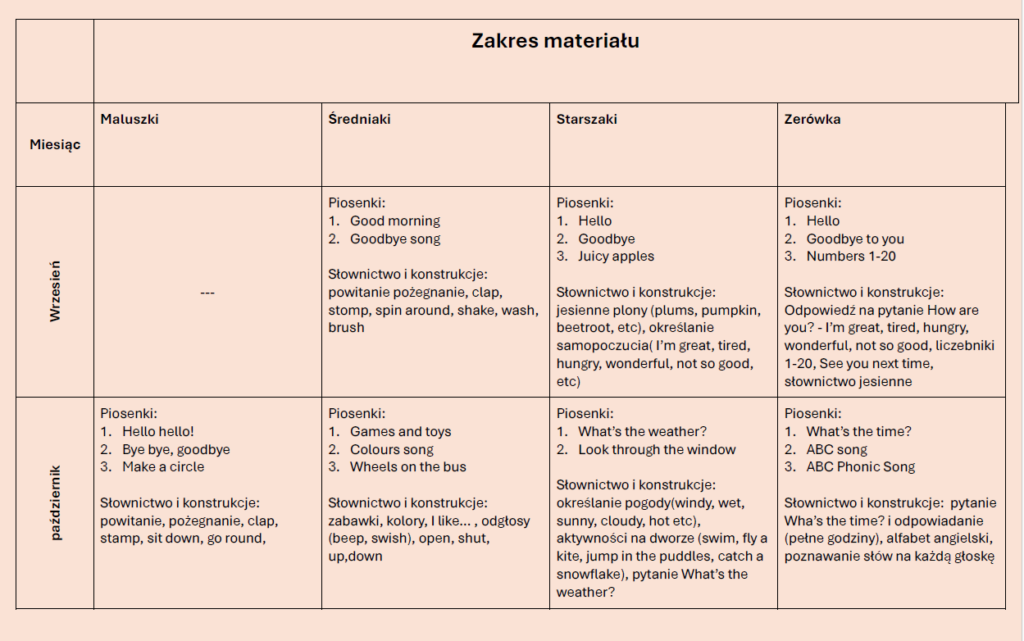 Bez kategorii Zakres materiału na zajęciach języka angielskiego w roku przedszkolnym 2025/2026 23 stycznia 2026 Administrator