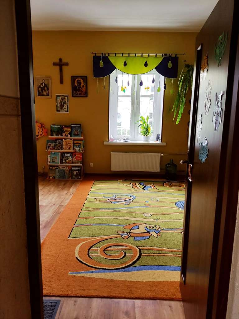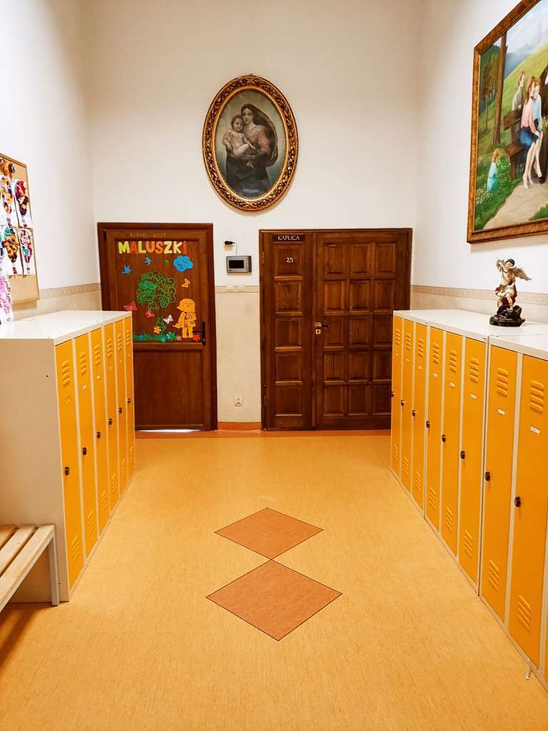 W budynku przedszkola znajduje się kaplica, w której codziennie się modlimy. Wraz z naszymi rodzinami uczestniczymy w Mszach Świętych w różnych intencjach.